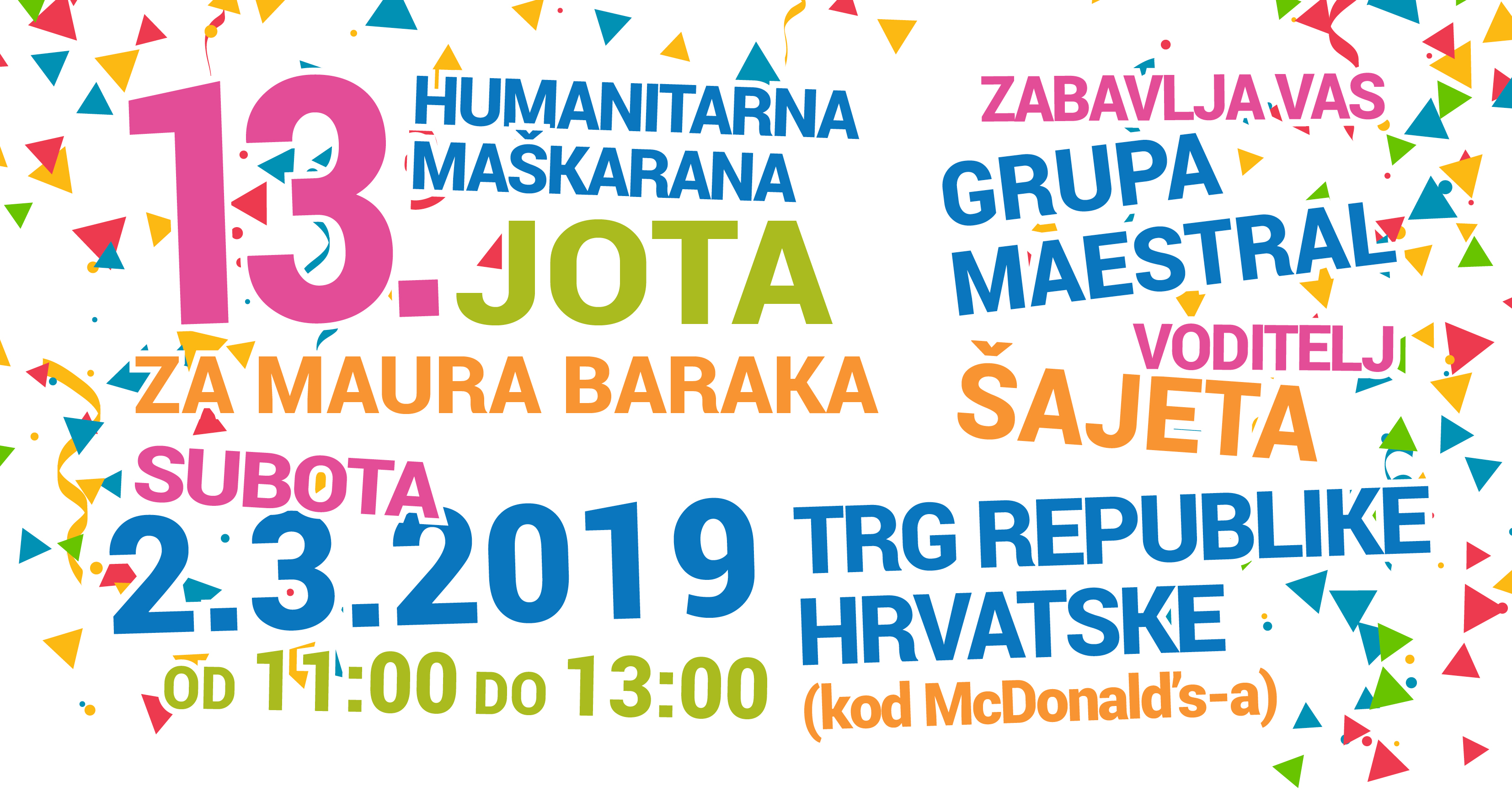 Udruženje obrtnika Rijeka, u sklopu Riječkog karnevala, po 13. put zaredom organizira humanitarno-gastronomsku manifestaciju Maškarana jota koja će se održati u subotu, 02.03.2019., u vremenu od 11,00 do 13,00 sati na Korzu, na Trgu Republike Hrvatske (kod McDonald’s-a).