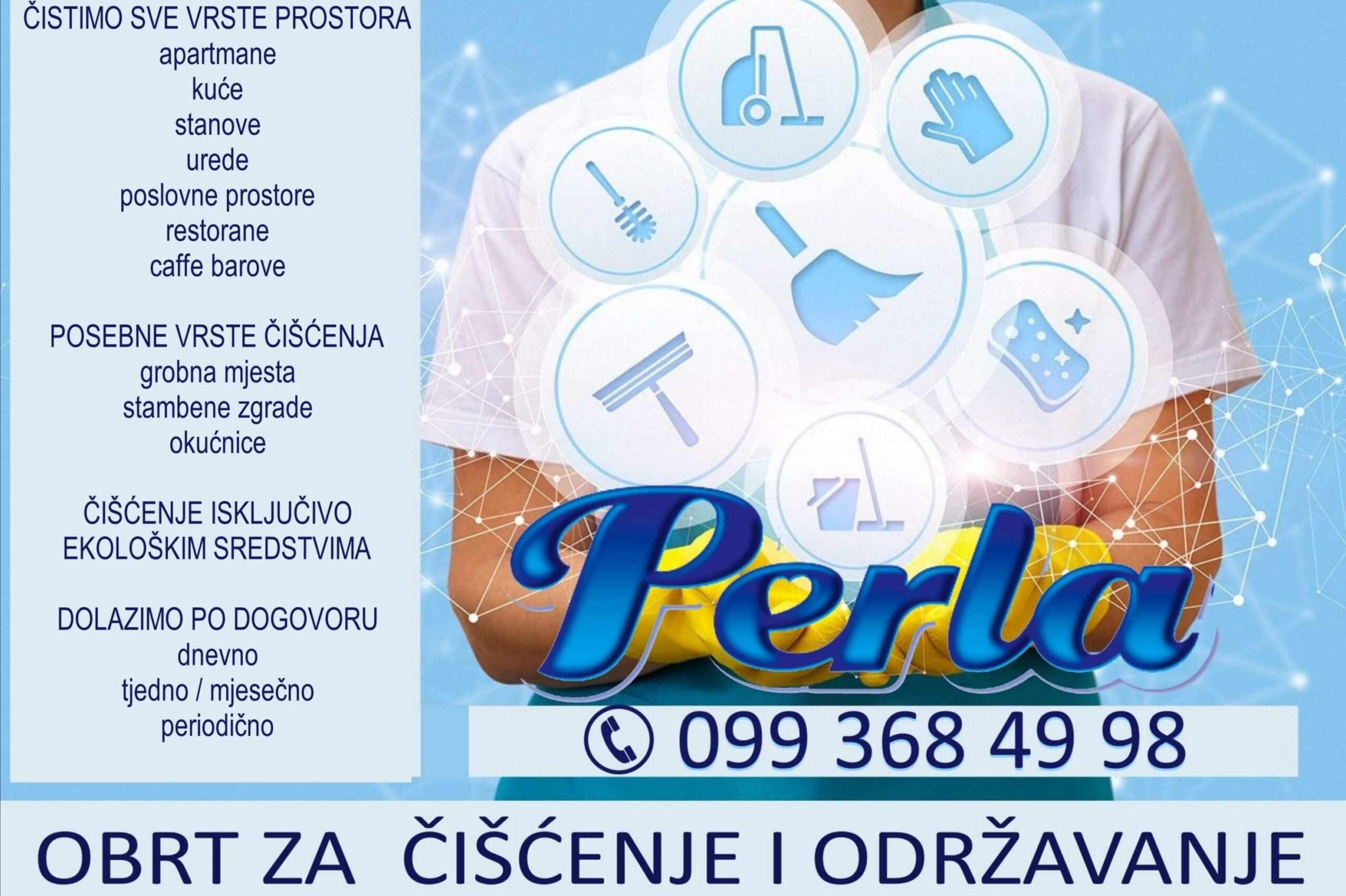 PERLA – obrt za čišćenje i održavanje stanova, kuća, restorana, poslovnih prostora, apartmana, cafe barova, stubišta, poslovnih zgrada, sportskih dvorana i svega ostaloga što se da očistiti.