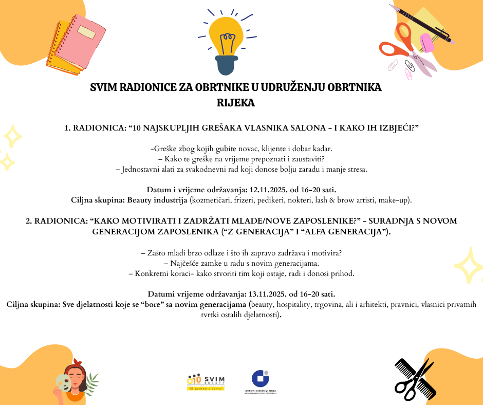 Udruženje obrtnika Rijeka poziva Vas na SVIM BEUATY radionice za sve članove Udruženja obrtnika Rijeka koje će održati Sanja Varlaj, mag. oec, NLP Master practitioner i business coach iz SVIM BEAUTY – CONSULTING & EDUCATION-a.